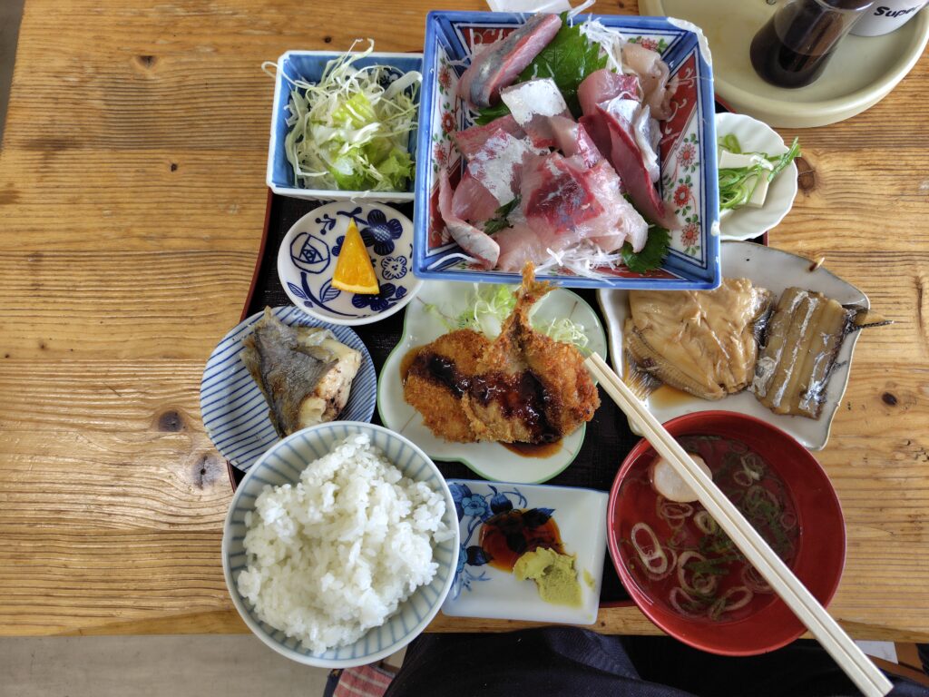 途中、天橋立市場食道街に立ち寄り、お造り定食(1,800円、税込み)をいただきました。新鮮な魚の旨みが口いっぱいに広がり、旅の始まりにふさわしい食事となりました。