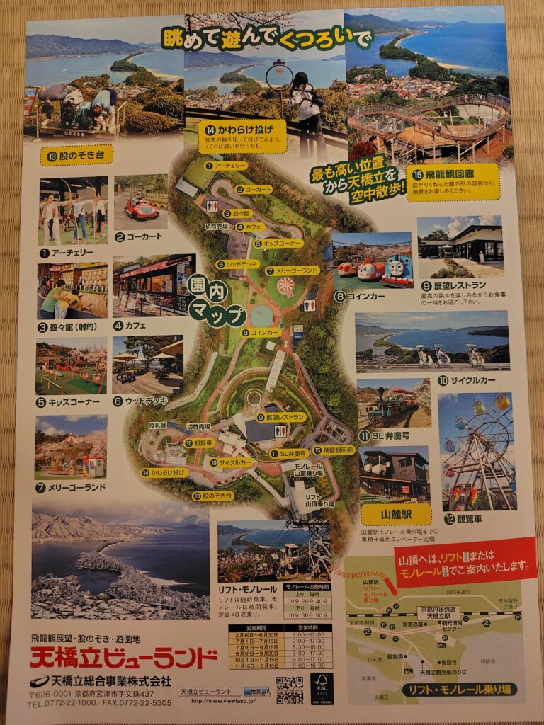 食後は天橋立ビューランドへ。リフト・モノレール(往復1,000円/人)で上に上ると、眼下に天橋立が広がり、左に阿蘇海、右に宮津湾が見えました。まさに絶景で、心が洗われるようでした。