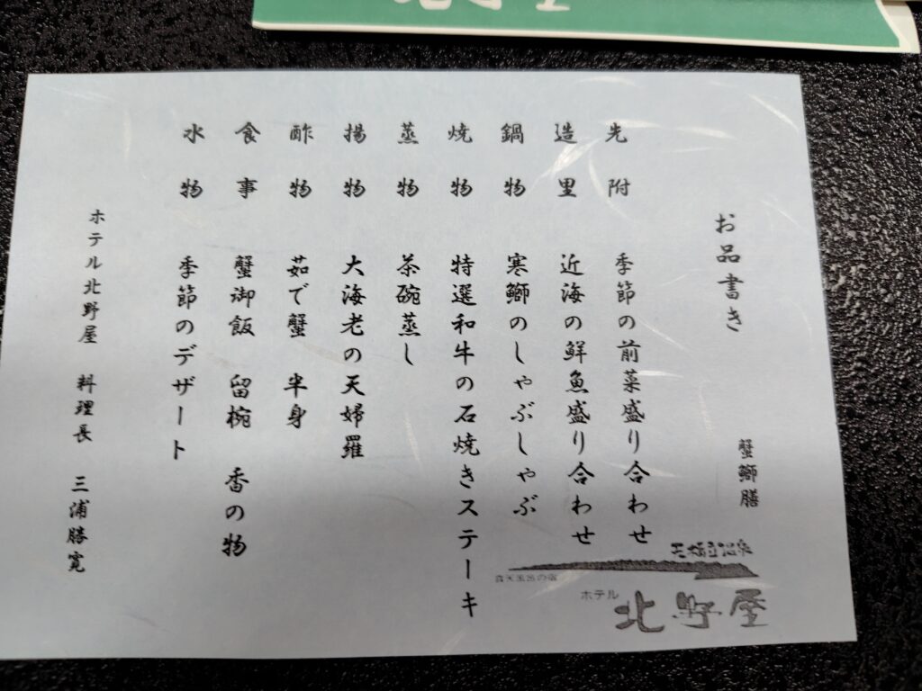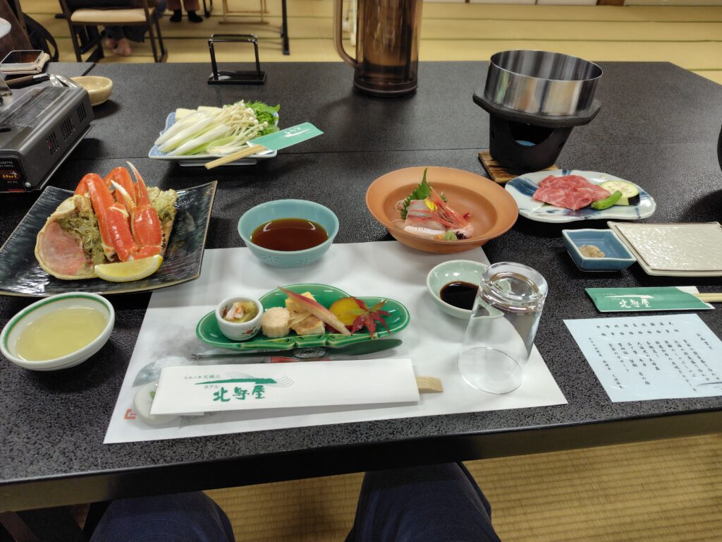 夕飯は和食を堪能しました。かにみそのボリュームの多さに驚きました。