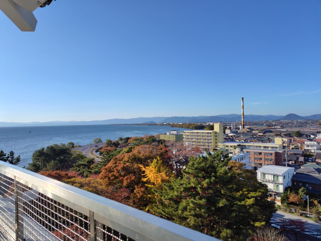 At Nagahama Castle, we climbed to the 5th-floor observation deck, where the panoramic view of Lake Biwa captivated us. I couldn’t help but wonder if Hideyoshi Toyotomi and other historical figures had once gazed upon the same scenery, which filled me with a deep sense of connection to history.