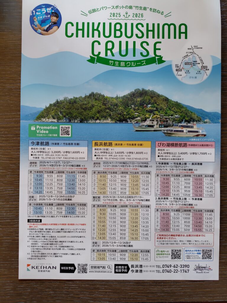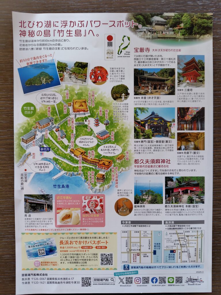 竹生島では、165段の急な階段を登りました。息が切れるほど大変でしたが、登り切った後に広がる景色は格別で、達成感に包まれました。宝厳寺から望む琵琶湖の眺めは美しく、宝物殿も訪れて歴史の重みを感じました。