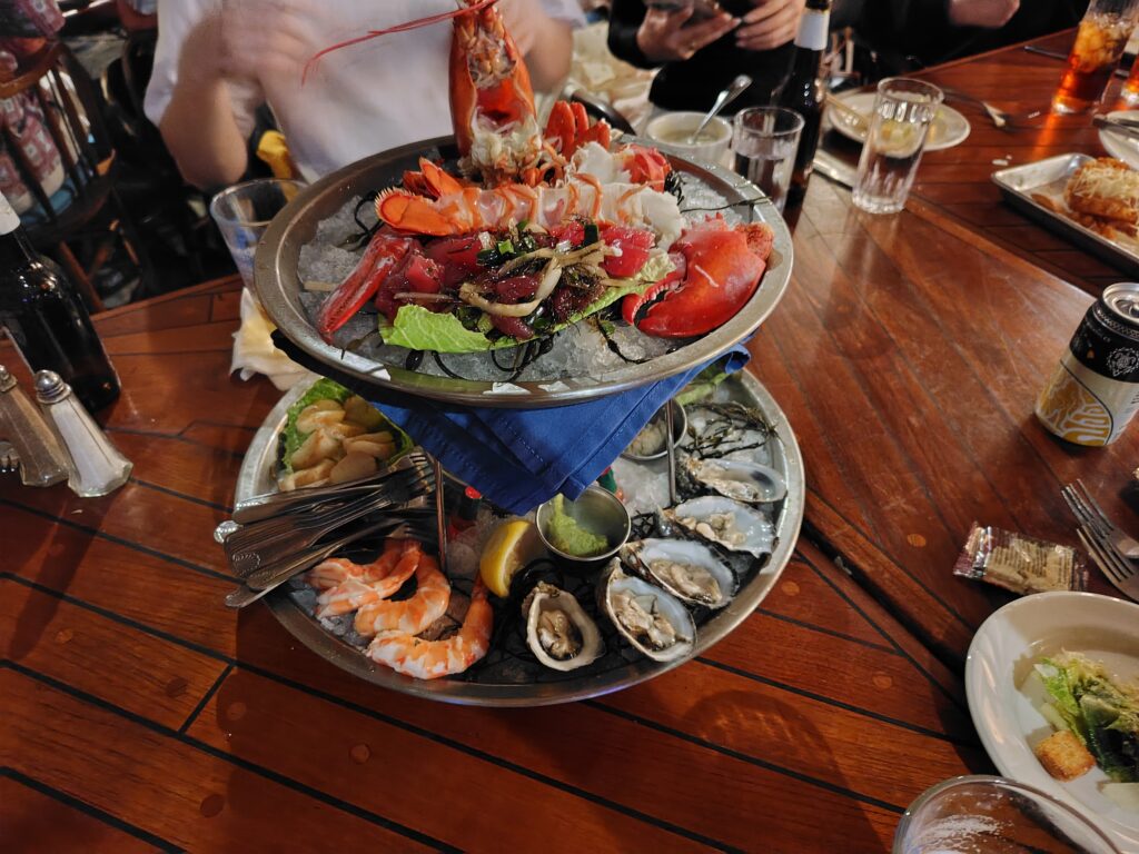 We were able to enter our room at 14:30 and rested for a bit. At 19:30, the nine members of both families gathered for dinner at Chart House Restaurant. Their No.1 popular dish, the seafood tower, was more than enough even in the small size. We enjoyed oysters, tuna, salmon, lobster, and more. With so many beers to choose from and no recommendation from the staff, I simply picked one with a Hawaiian-sounding name.