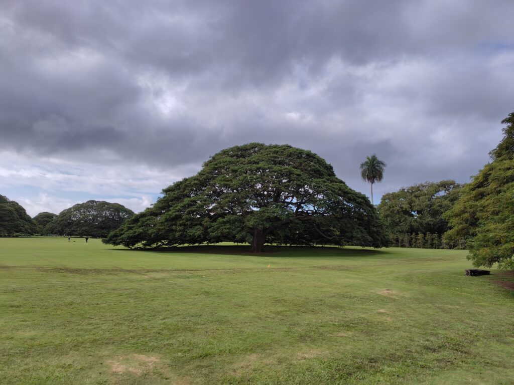 「この木なんの木」で有名なモンキーポッド。入園料10ドル。日本人にとって特別な場所だと感じました。
